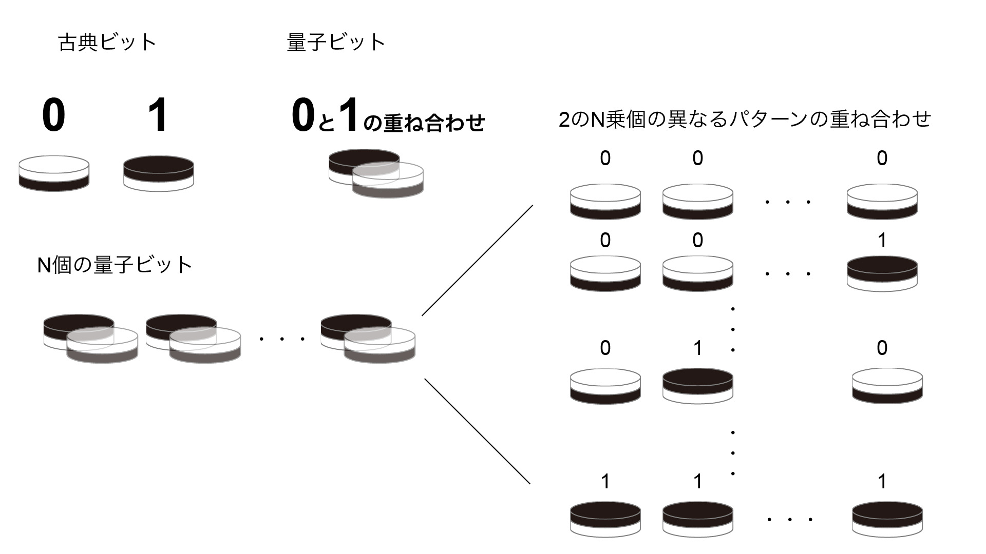 従来のコンピューターは0か1かの古典ビットで情報を処理するのに対し、
