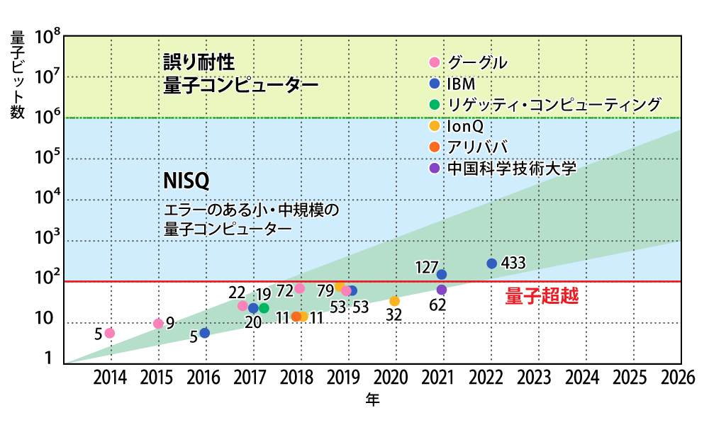 制御できる量子ビット数は年々増えており、各社・団体が技術を競う。