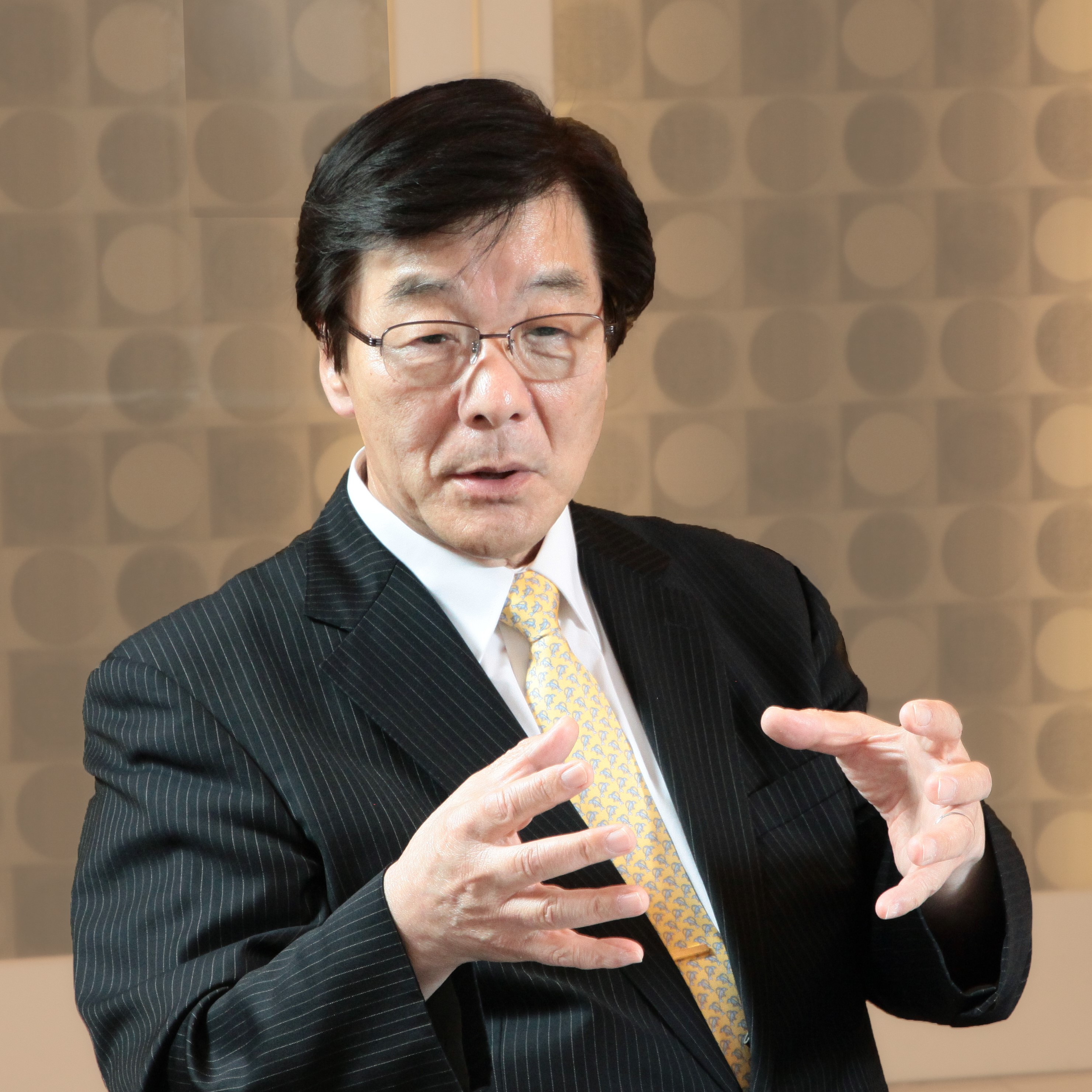 エヌエフホールディングス高橋常夫会長と、渡辺啓仁基礎技術研究センター長。