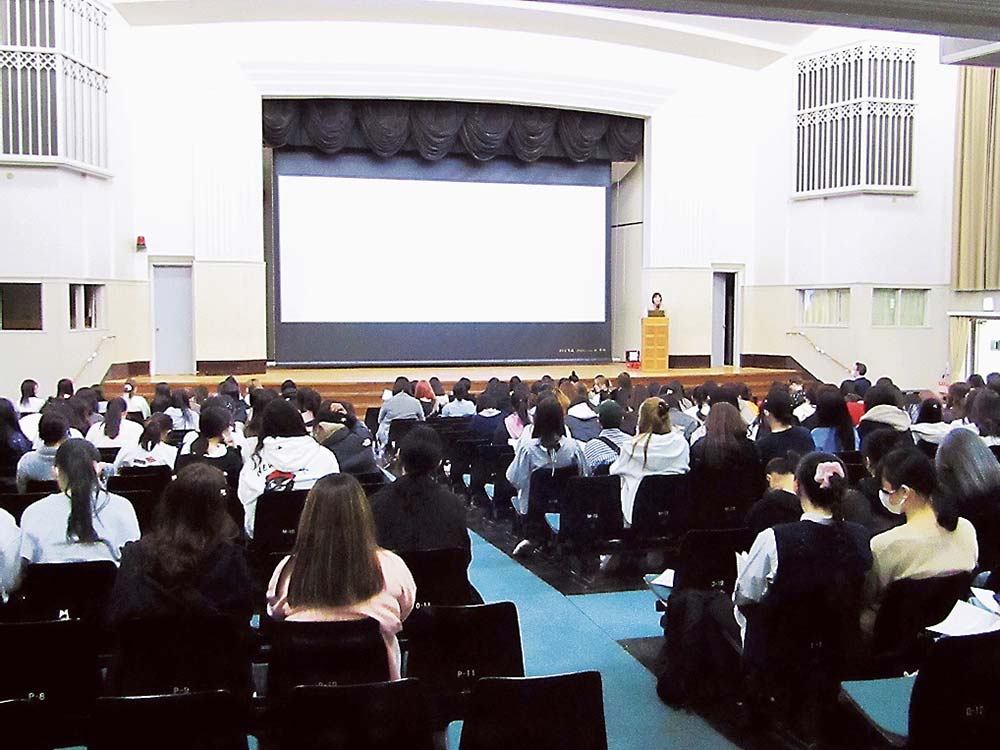 KDDI関西総支社は、大阪女学院大学(大阪市中央区、加藤映子学長)で、防災講話を実施した。能登半島地震のKDDIの取り組みを紹介したほか、スマートフォンの災害時に用意しておくべきアプリなどを紹介。女性用の防災ポーチの作り方なども披露した。会場には250人の学生が集まった。